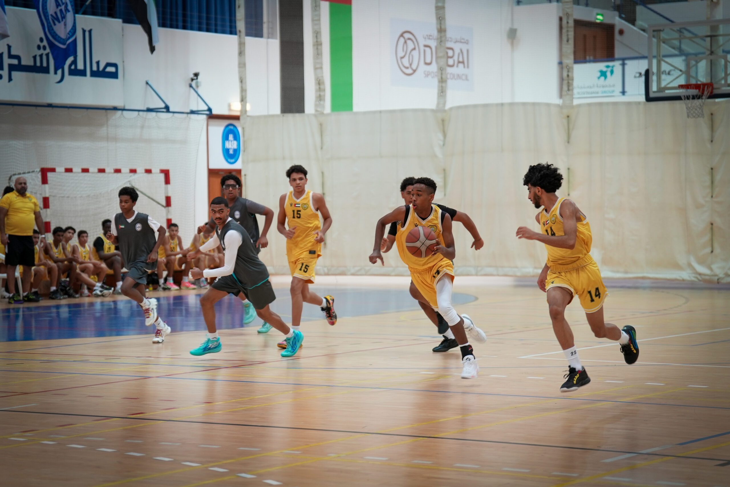 The basketball competition took place at Rashid Bin Hamdan Hall in Al-Nasr Sports Club.