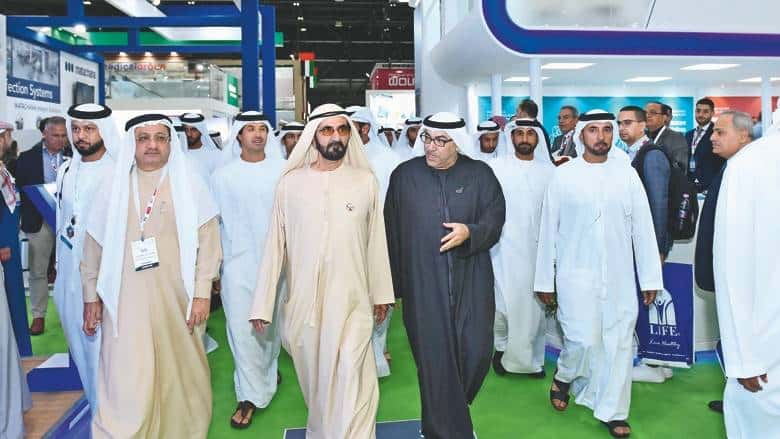 His Highness Sheikh Mohammed bin Rashid Al Maktoum had met with GE pavilion and saw administrator first. After that h went on tour in Draeger Medical GmbH, Siemens, Phillips, the Abu Dhabi Health Authority, and the Dubai Health Authority, where he was briefed about different products and services.