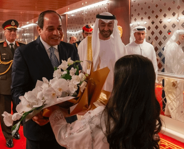 El Sisi landed in Abu Dhabi on Wednesday, 13 November, and was greeted by HH Sheikh Mohamed bin Zayed Al Nahyan, Crown Prince of Abu Dhabi and Deputy Supreme Commander of the UAE Armed Forces.
