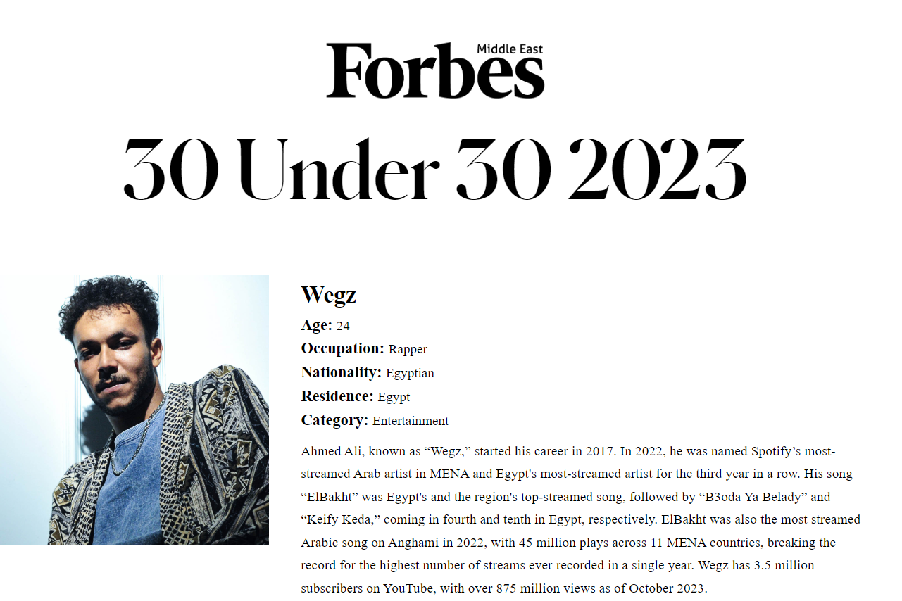 as well as Emirati businesswoman Amira Sajwani and Egyptian rapper Wegz.