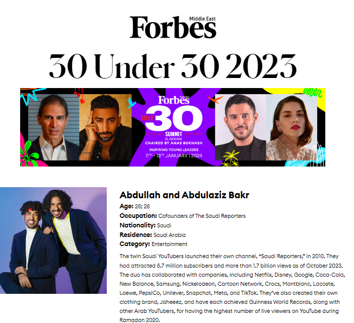 In addition to founders of Saudi Reporters Abdullah and Abdulaziz Bakr and content creator Amr Maskoun and Moroccan footballer Sofiane Amrabat.