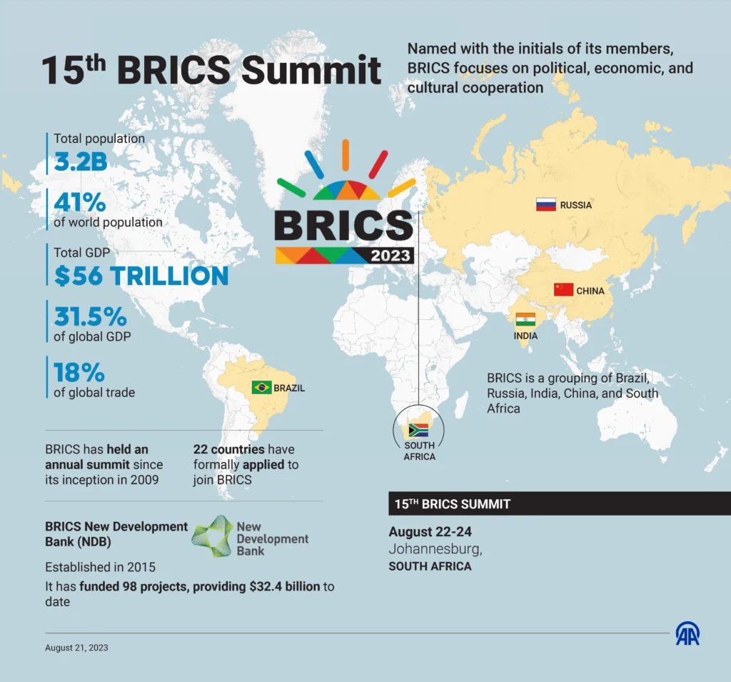 Leaders from around 50 countries have also been invited to attend the summit to discuss expanding the current BRICS membership.