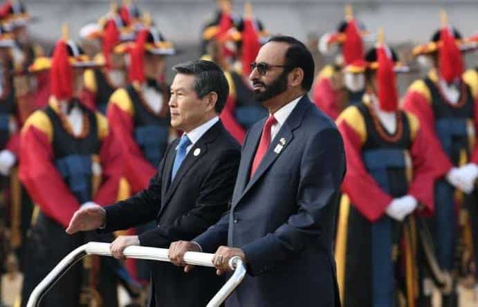 Mr Al Bawardi was greeted by Jeong Kyeong-doo, South Korea’s minister of defence, at a welcome ceremony held in the capital, Seoul.