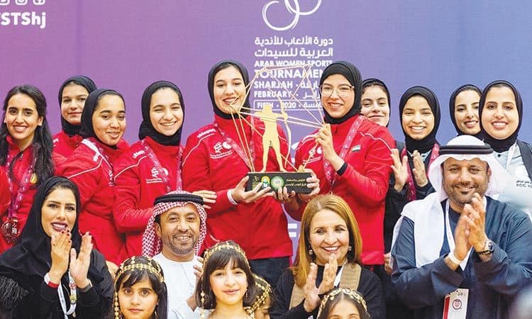 UAE women win after win at Arab Women Sports Tournament, the Sharjah Women’s Sports Club archery team pose with their trophy after winning the gold in the event.